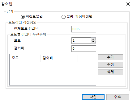 사용되며 모드번호와 모드 별 감쇠비를 별도로 입력한 후 추가합니다.