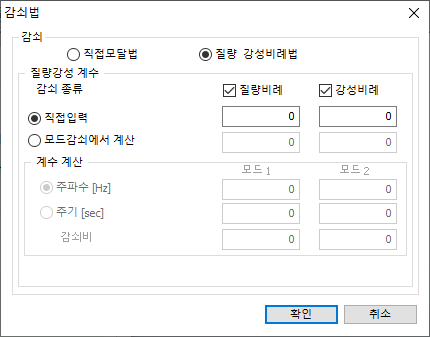 산정합니다. 감쇠 종류에서 체크된 항목에 대해 비례계수를 직접 입력하거나 모드감쇠에서
