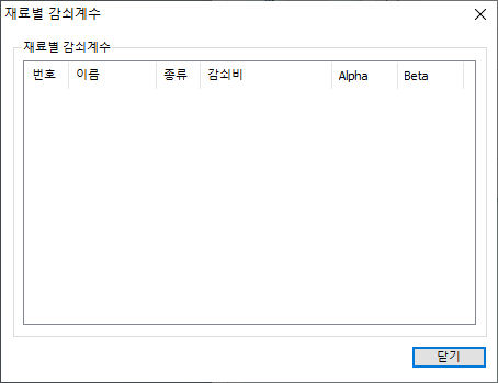 수 있습니다. '재료 별 감쇠 계수 보이기' 기능에서 입력된 재료의 감쇠비와 이로부터