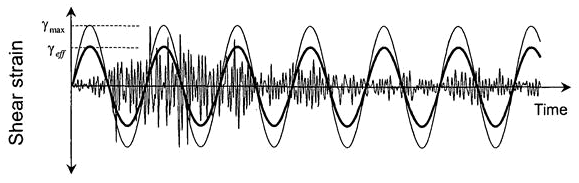 전단변형률은 시간에 따라 지속적으로 변합니다. 이를 등가선형해석에 적용하기 위해 유효전단변형률