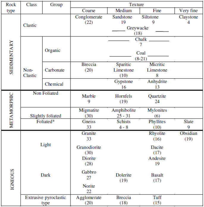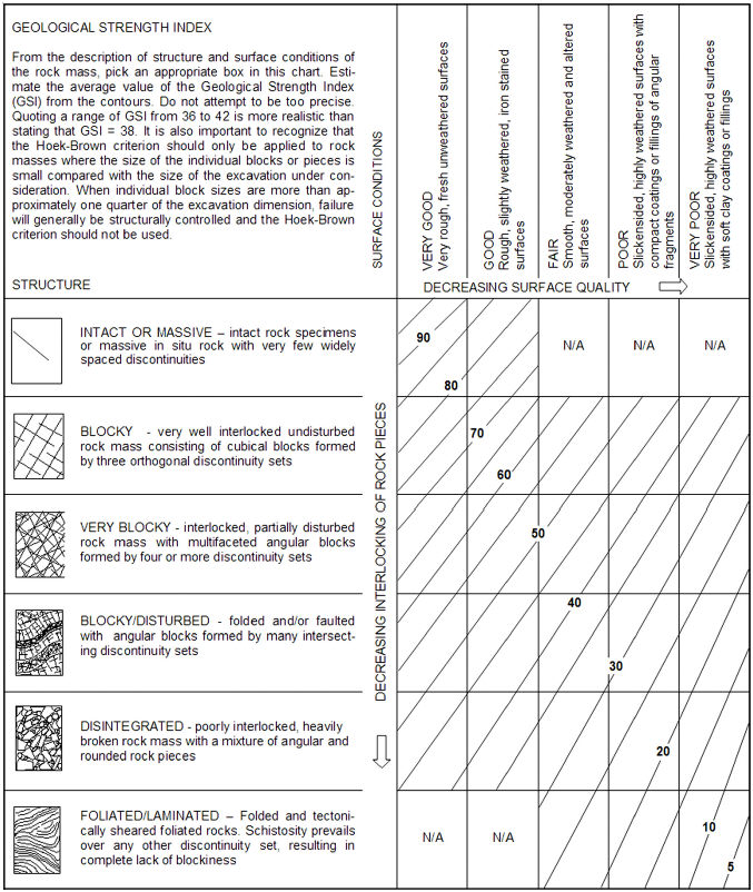 Index)로 부터 계산할 수 있습니다. 암반등급에 따른 GSI는 아래 도표와 같으며, 일반적으로