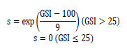 모델에서 a=0.5인 것으로 간주하며 GSI에 따른 m,s의 관계는 아래와 같습니다.