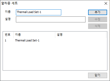 이름과 사양을 입력하고 [추가]를 클릭하여 열 부하 세트를 정의합니다. 미리 입력할 수 있으며, 발생 시 각 열부하의 이름을 입력할 수 있습니다.