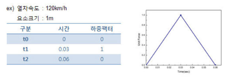 작도 시 도달 시간 산정에 사용됩니다.열차 이동하중의 경우 열차가 도달하기 전에 하중이