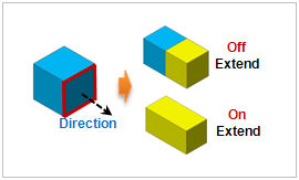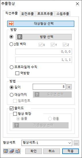 추출 작업에 사용될 기하 형상 (면, 선, 점)을 선택한 후 추출할 방향과 길이를 입력합니다.